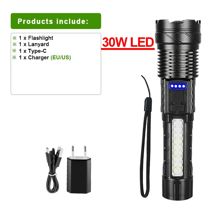 Brand Newest Powerful Flashlight COB Super Long Shot Rechargeable Torch Light High Power LED Flashlight Built-In Battery Lantern